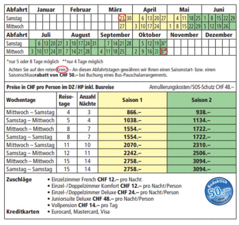 Essen: Halb- oder Vollpension mit Frühstücksbuffet. Auf Wunsch kalorienreduzierte Kost (ohne Aufpreis): Reduktionskost, Diabeteskost, vegetarische, laktose- und glutenfreie Kost.
