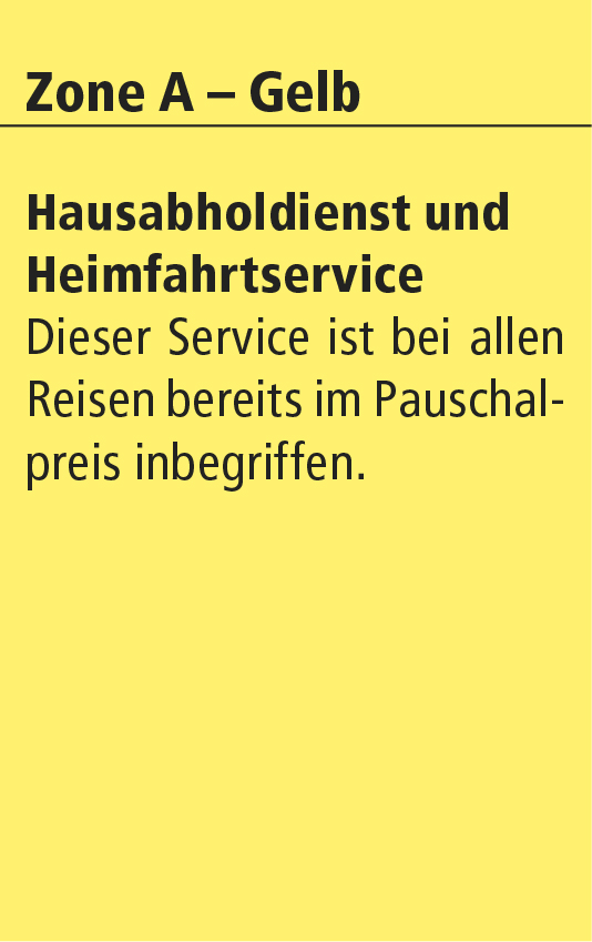 Der Wohnabholdienst ist bei allen Reisen im Pauschalpreis inbegriffen.